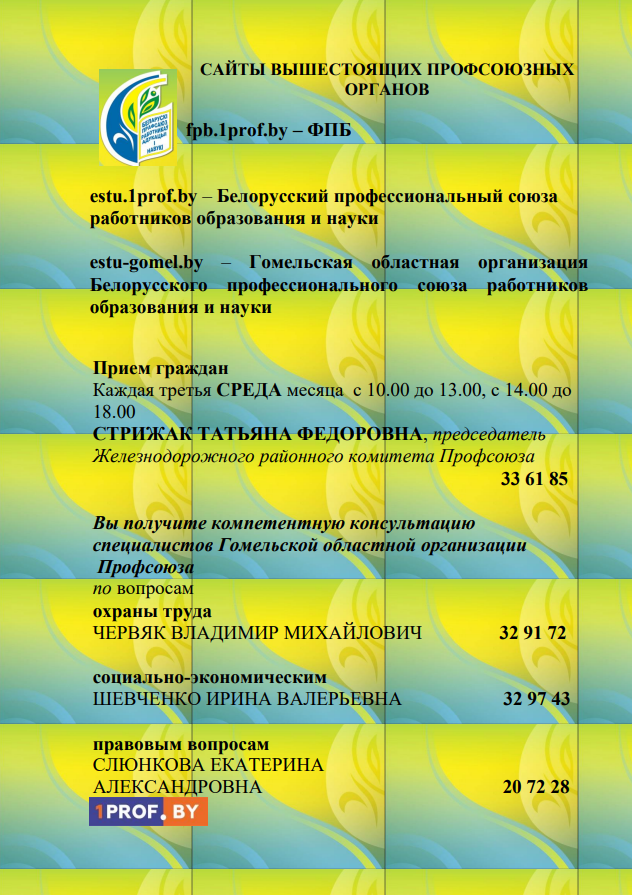 БЕСПЛАТНАЯ правовая помощь членам профсоюза по законодательству Республики Беларусь о труде в Гомельской областной организации Белорусского профессионального союза работников образования и науки