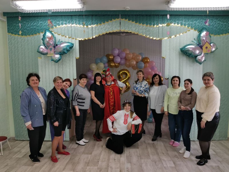 6 марта в государственном учреждении образования "Детский сад 34 г. Гомеля" состоялось мероприятие по поздравлению с наступающим праздником-Днем женщин. Инициатором концертной программы выступили профсоюзные активисты. Почетными грамотами отдела образования, спорта и туризма администрации Железнодорожного района награждены помощники воспитателя Лашкевич Елена Дмитриевна и Сологубова Галина Михайловна. Улыбками, подарками, радостным общением запомнится работникам этот предпраздничный день.